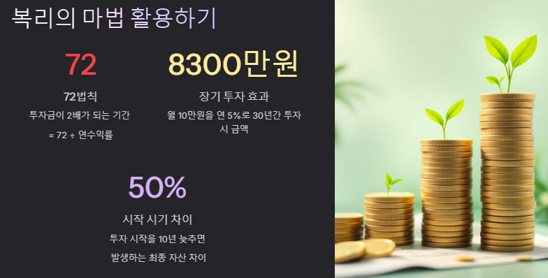 - 복리의 힘 활용: 장기적 관점에서 복리효과를 극대화합니다.